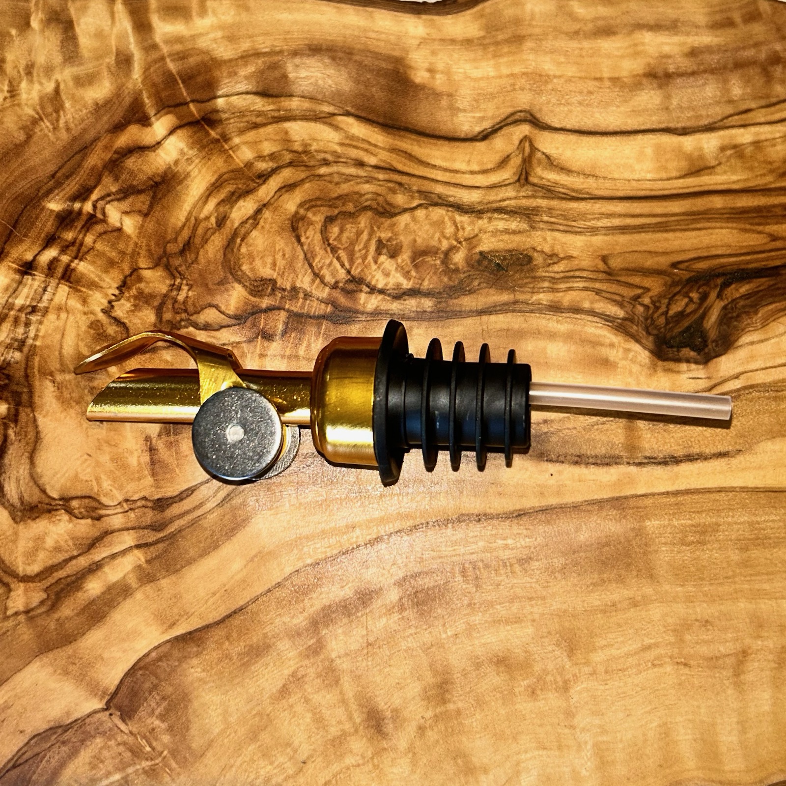 Ideal for any of our oils or balsamic vinegars! Beautifully designed, the spout opens when the bottle is turned upside down and closes when the bottle is upright. This weighted pour spout fits all three sizes of our bottles and allows the user to achieve a controlled pour, eliminating mess and over use! Please Note:  The weighted pour spout fits our 200ml, 375ml, & 750ml bottles. The weighted pour spout does not fit our half gallon glass containers or the 60ml bottles in our sample packs (Artisan & Gourmet).