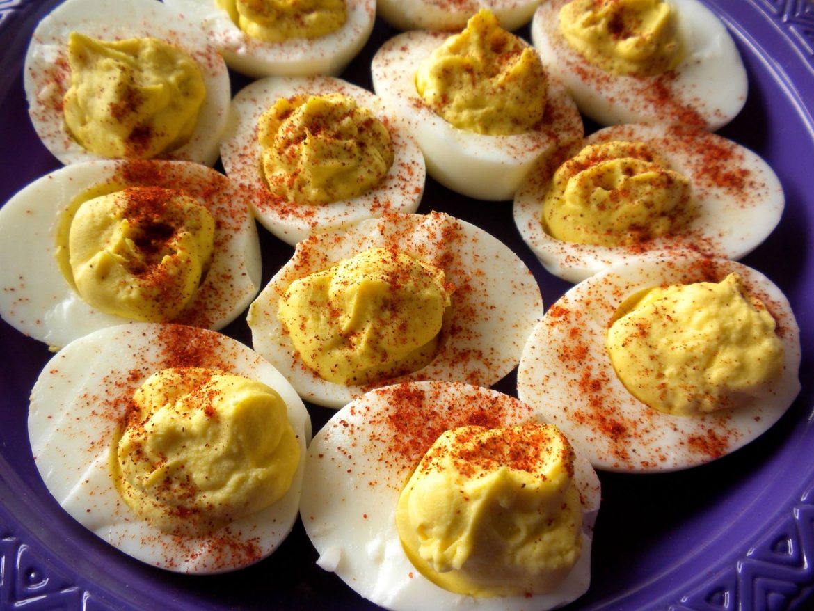Place mixture in a pastry bag with a plain or star-shaped tip (or a small zip-top plastic bag with a corner cut out), and pipe mixture into remaining egg halves. Garnish, if desired.